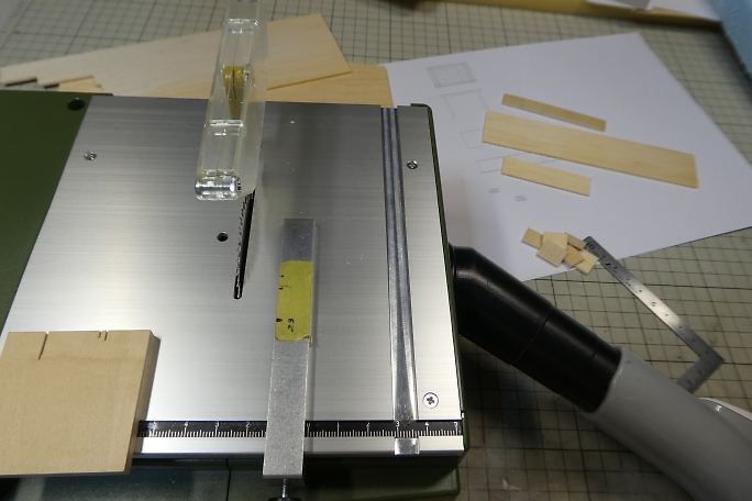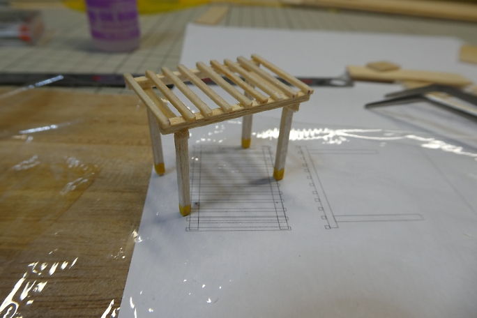 ![]() ストラクチャーを製作します。 1/80サイズの藤棚と駅ホームを製作します。 スクラップバルサから藤棚用の部材を 切り出します。 テーブルソーを使用しましたが、切り粉になった分の方が多かった気がします。 ![]() 右が駅ホーム用、左が藤棚用の部材です。 ![]() 藤棚の柱部分です。 柱の下部、コンクリートの基礎部分を表現するのに、細く切ったマスキングテープを巻いて少し だけ柱を太くしています。 ![]() テープの巻き終わった柱パーツです。 ![]() 図面に合わせて部材を瞬間接着剤で組み立てて行きます。 ![]() ![]() 屋根のスノコを接着して1/80サイズの藤棚生地完成です。 |