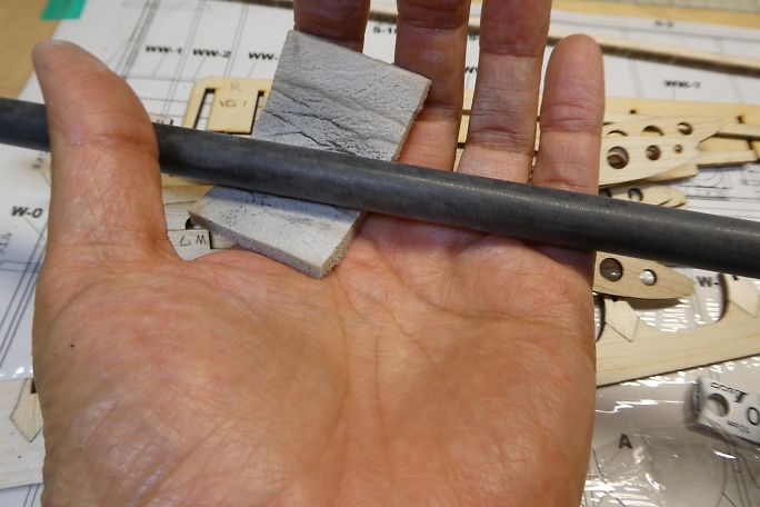 ![]() 中央翼片翼分のパーツを切り出しておきます。 ![]() 後縁材、ジグには向きがありますので、T(チップ 外側)、R(ルート 根本側)を書き込んで、間違わない様にしました。 ![]() リブ、他のカット跡の焦げ目を軽くサンディングして落としておきます。 ![]() スパーになるカーボンパイプはスポンジヤスリでサンディングして足ツケをしておきます。 表面に樹脂が乗っているので、 最初は白い削り粉しか出ませんが、黒い粉が出る様になるまで削りました。 ![]() カーボンパイプを硬化促進剤で拭いておきます。 硬化促進剤はロックタイトの712を使用します。 |