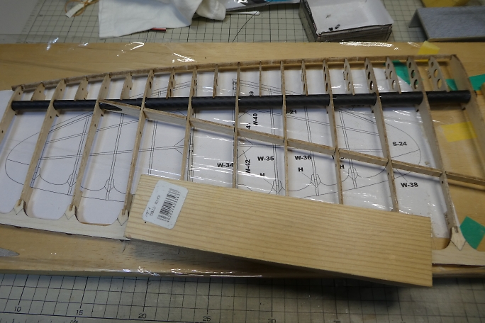 二段目も後縁材とリブの段差を落として全体をサンディングします。 ![]() 前縁とリブの段差もサンディングして成型していきまか。 |