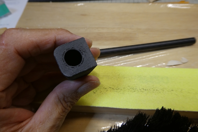 テールコーンの接着面を平滑になるように整形します。 3Dプリンターパーツのフィラメントのヒゲが出ているのでしっかり 削り落とします。 ![]() テールパイプをガイドにテールコーンを少量の低粘度瞬間接着剤で接着します。 染みこんでガイドのパイプを接着 してしまわない様に注意します。 ![]() ![]() ![]() テールコーン周辺をテールコーンに合わせて整形します。 胴体上面は主翼とツライチとなるため、角を落とさない様に します。 |