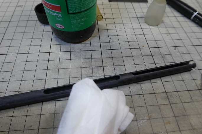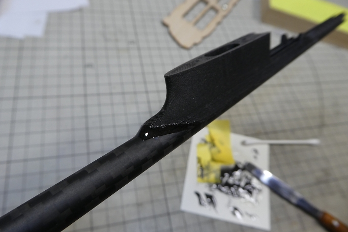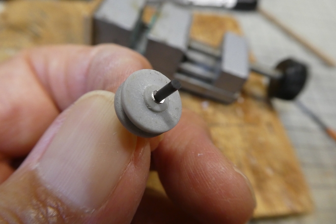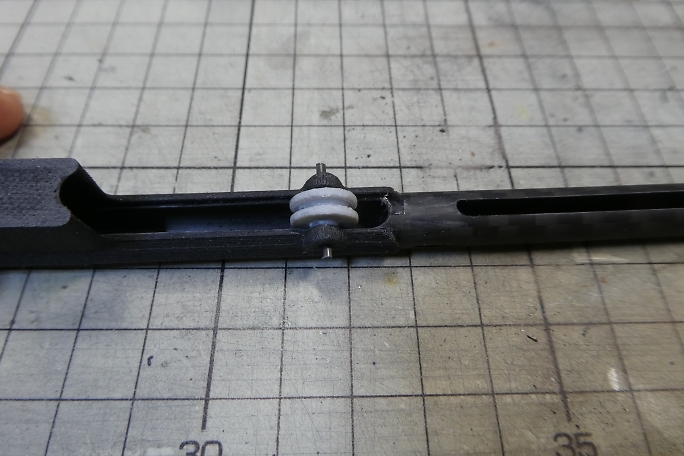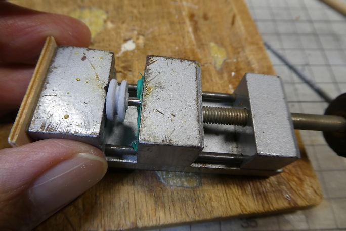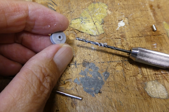 キットの状態では、プーリーにカーボンロッドを接着し、水平尾翼マウントのプーリー取り付け穴をカーボンロッドが 回る仕様です。 それをプーリーにステンレスパイプで作ったカラーを入れ、カラーの中でカーボンパイプが回る様に変更します。 外径2.1ミリ、内径1.5ミリのステンレスパイプを4ミリ長にカット、バリを取っておきます。 ![]() プーリーの穴を2ミリに広げます。 ![]() ミニバイスを使用して、カラーをプーリーに圧入します。 ![]() カラーが挿入されたプーリーです。 カーボンロッドが空回りする形になりました。 ![]() 仮組みしてみました。 後に、カーボンロッドと水平尾翼マウントを接着します。 |