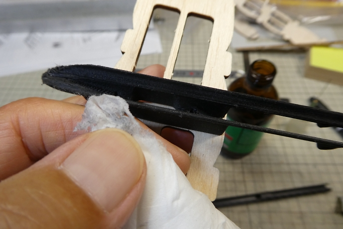 ![]() 水平尾翼マウントの水平尾翼が乗る面をサンディングブロックで平滑に仕上げておきます。 3Dプリンターパーツの フィラメントのヒゲやデコボコがあるので、削り取ります。 ![]() ![]() 水平尾翼マウントが乗るテールブームをマスキングをしてサンディングして足ツケをしておきます。 ![]() 水平尾翼マウントの接着面もサンディングして足ツケをしておきます。 ![]() ![]() それぞれの接着面を硬化促進剤で拭いておきます。 ![]() ダミーの水平尾翼とダミーの垂直尾翼を使ってアライメントを出して、低粘度瞬間接着剤で接着します。 ![]() 接着の終わった水平尾翼マウントです。 前側にヒケがあって、テールブームの間に隙間ができました。 ![]() 養生をして、カーボンパウダー入り5分エポキシを充填して隙間を埋めます。 ![]() マスキングテープは直ぐに剥がしておきます。 |