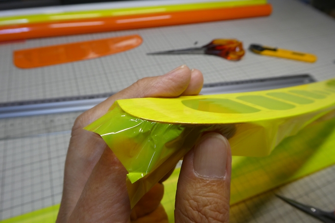 ![]() フイルム貼りはカンを取り戻す為に尾翼など小物から貼って行きます。 バルサ面に貼る時は、まず、掃除機で表面の 粉やゴミを吸い取ります。 ![]() 次にウエスで磨き上げる様に拭いていきます。 ![]() きむらクラフトではフイルムは後からのトリミングをしなくて良い様に、予め貼る物のサイズにフイルムをカットしています。 曲面のカットはロータリーカッターが便利です。 フイルムは尾翼、主翼共にOK模型のEライトフイルムです。 ![]() 尾翼の一部が貼り終わりました。 フイルム貼りに使用する道具一式です。 アイロンはソックスを履かせた中低温用と 高温用の2台体制です。 ![]() スポイラーは両面貼っています。 スライダーは避けて貼っています。 ![]() ラダーは削りすぎてふにゃふにゃになってしまっているので、収縮のしすぎに注意します。 ![]() エッジ部分は高温アイロンで加熱、熱いのは少しガマンして引っ張って馴染ませます。 ![]() 貼り終わった尾翼です。 |