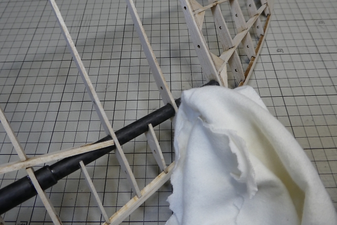![]() 三段目は実物から型取りが出来ないので、図面を切り取って型紙にします。 のり代分大きく切り取っています。 ![]() 端は高温のアイロンで加熱しつつ、引っ張ってカーブに馴染ませます。 ![]() ![]() 全体の弛みを取って貼り終わりです。 |