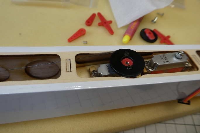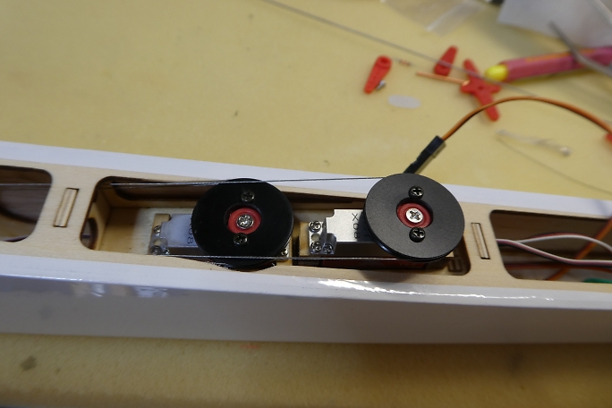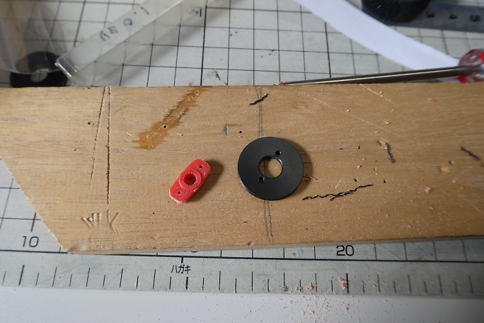 ![]() 今回リンケージに使用するプーリーです。 以前、知り合いに作っていただいた一品物です。 2005年頃に製作した 「シタプレイリー号」で使用した物の残りです。 素材はナイロンのようです。 ![]() ![]() サーボホーンに1.7ミリタッピングねじで取り付けます。 ![]() 下側になるラダーサーボのプーリーとフレームが干渉したのでフレームの一部を削りました。 先にラダー、エレベーターサーボを搭載すると通すのが大変になるスポイラーサーボのコードを敷設しておきます。 ![]() サーボはサーボ付属の取り付けねじを使用して取り付けました。 |