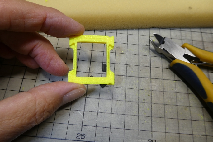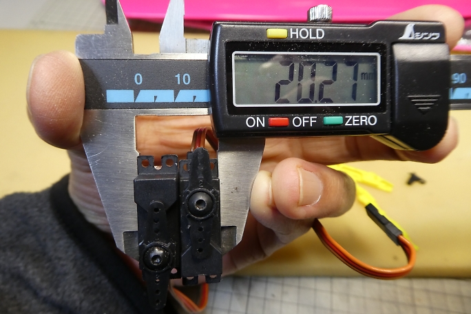 エレベーターとラダーサーボ、二個分の厚みが20.27ミリあります。 ![]() キット付属の3Dプリンターパーツのサーボベッドのサーボ取り付け部分の幅が16.78ミリしかありません。 X08等の8ミリ 厚サーボ用になっているみたいです。 前回SENSEを組んだ時に付属していたサーボベッドは変形してしまっていて、使用に耐えなかったのですが、今回の 物は問題無さそうです。 ![]() サーボのグロメットは取り外しておきます。 ![]() サーボベッドを削ってサーボの幅に合わせます。 脇の幅がかなり薄くなっていますが、この後、フレームを取り付ける ので、強度的な問題は無いと思います。 ![]() サーボコードの逃げも加工しておきます。 ![]() フレーム取り付けねじ用のタボもサーボと干渉する部分を削ります。 ![]() サーボベッドをフレームに組み付けます。 1.7ミリのタッピングねじを使用しました。 ![]() サーボを取り付けてみます。 2ミリのタッピングねじにワッシャーを組み合わせています。 ![]() フレームを胴体の内壁に合わせて削ります。 ![]() 胴体のサーボベッド接着部をサンディングしておきます。 ![]() サーボベッドの位置は、受信機が出し入れ出来る最後端を探ります。 ![]() ![]() 胴体とサホーボベッドの接着面を硬化促進剤で拭いておきます。 硬化促進剤はロックタイトの712を使用します。 ![]() 探った位置に中粘度瞬間接着剤で接着します。 いつもなら、カーボンパウダー入り5分エポキシを盛って補強を する所ですが、接着面積が比較的大きいので省略しました。 |