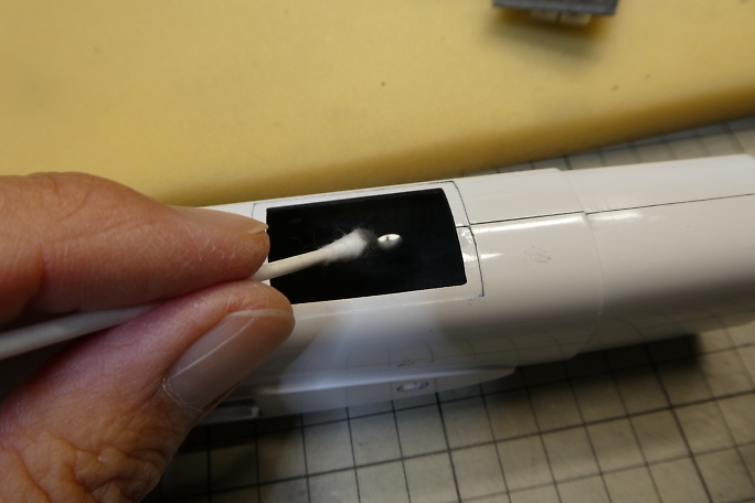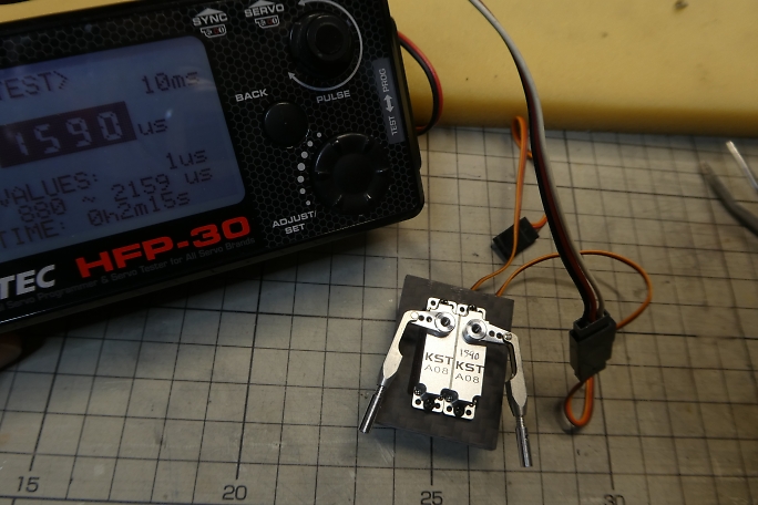 ![]() サーボにサーボホーンを組み付けておきます。 セレーションの数が奇数なので、左右のサーボでホーンの位置が 揃いません。 片側は1520μs、もう片側は1590μsでサーボホーンの位置が揃います。 リンケージ時はこの数値で行います。 ![]() ![]() サーボベッドと胴体の接着部分を硬化促進剤で拭いておきます。 ![]() 位置決めをして、低粘度瞬間接着剤でサーボベッドと胴体を接着します。 |