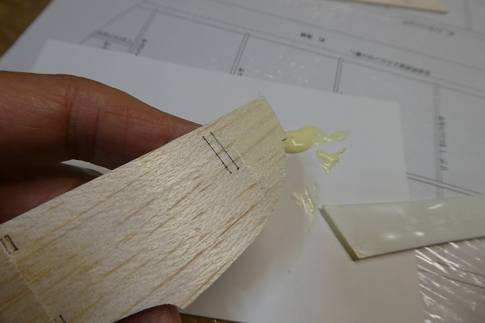 捻れに注意しつつ、胴枠を接着していきます。 マーキングが正確なので、マーキングだよりで問題無く行けました。 ![]() |