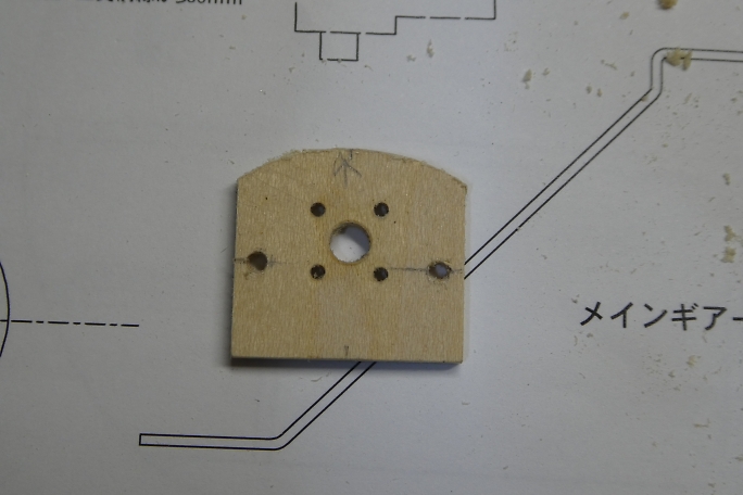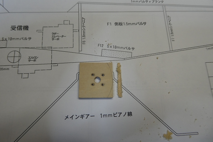 モーターを図面と合わせて位置確認をします。 モーター長が設計より短いので、胴枠を前に出す必要が有りそうです。 ![]() モーター付属のモーターマウントを胴枠の形に合わせてカットします。 ![]() モーターマウントのモーター取り付け穴脇に、モーターマウントを胴枠に取り付ける為のネジ穴を開けます。 ネジ穴 周りは瞬間接着剤を染みこませて補強しておきました。 ![]() モーターマウントを胴枠に取り付けて見ます。 2.6ミリのタッピングねじを使用しています。 ![]() 図面よりモーター位置が前に出るために、補強材を前進分切り取ります。 |