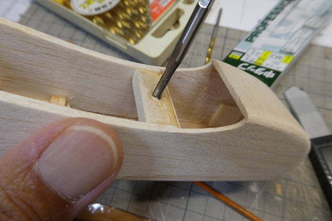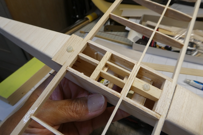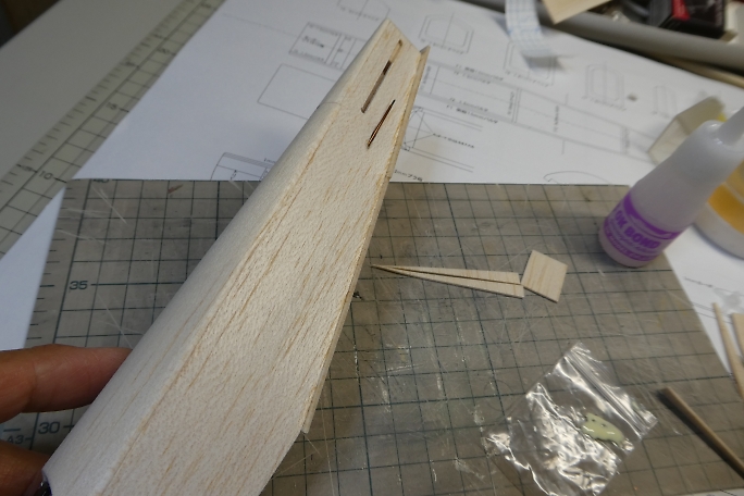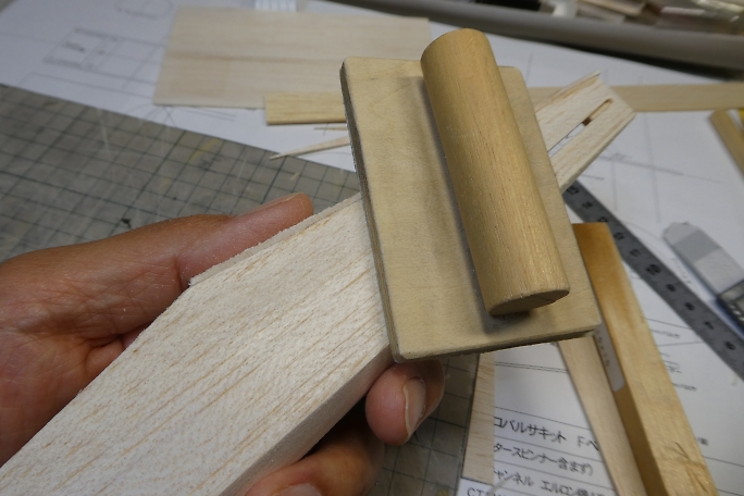 ![]() リンケージの敷設が終わったので、下面を1ミリバルサでプランクします。 胴枠にはタイトボンドを塗っています。 ![]() 主翼を合わせて見て、エルロンホーンに当たる部分を削ります。 ![]() ![]() 下面プランクのはみ出しをトリミングし、全体もサンディングして生地完となります。 ![]() ウイングボルト受けに2ミリの穴を開け、低粘度瞬間接着剤を染みこませて補強をしておきます。 ![]() M3のタップでネジを切り、再度低粘度瞬間接着剤で補強、仕上げにもう一度タップでさらっておきます。 ![]() 実際に主翼を取り付けるのに使用するM3のナイロンネジをねじ込んでネジの切れ具合を確認しておきます。 ![]() 主翼を取り付けてみました。 |