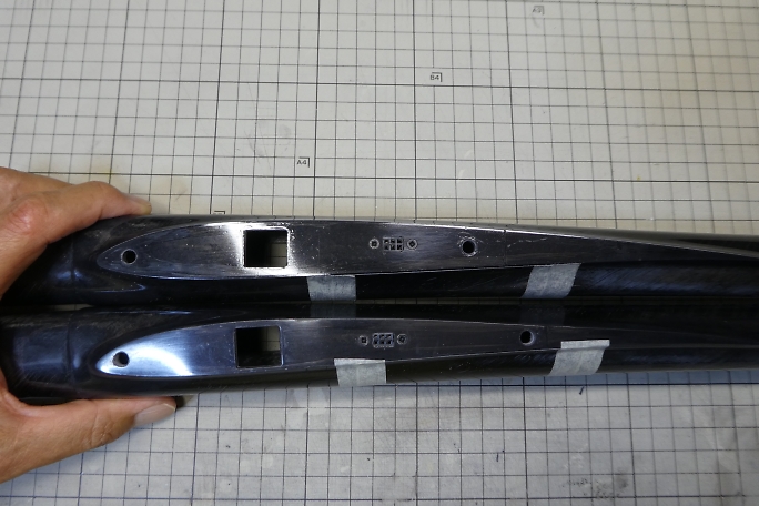 胴体の重さはExplorerQ4とほぼ同じで、中央パーツ以外ExplorerQ4との互換があるようです。 テール部分は固さが 増していて、ラダーエレベーターサーボの搭載は裏面になります。 ![]() 上がExplorerQ4で下がCHALLNGERです。 翼の厚みや翼型の違いが判ります。 ![]() 水平尾翼マウント部分の形状は全く違っています。 ![]() ![]() 垂直、水平尾翼の重量はExplorerQ4とほぼ同じです。 ExplorerQ4が方から出してから塗装をしているのに、こちらは 型にカラーを入れてから整形しているようです。 ![]() 水平尾翼中央は垂直尾翼のマウントがあります。 ![]() ラダーホーン部分の逃げがあります。 ![]() 左がExplorerQ4、右がCHALLNGER。 ![]() 下がExplorerQ4、上がCHALLNGER。 ![]() 下がExplorerQ4、上がCHALLNGER。 垂直尾翼は見た目は同じですが、かなりアチコチ違っています。 |
