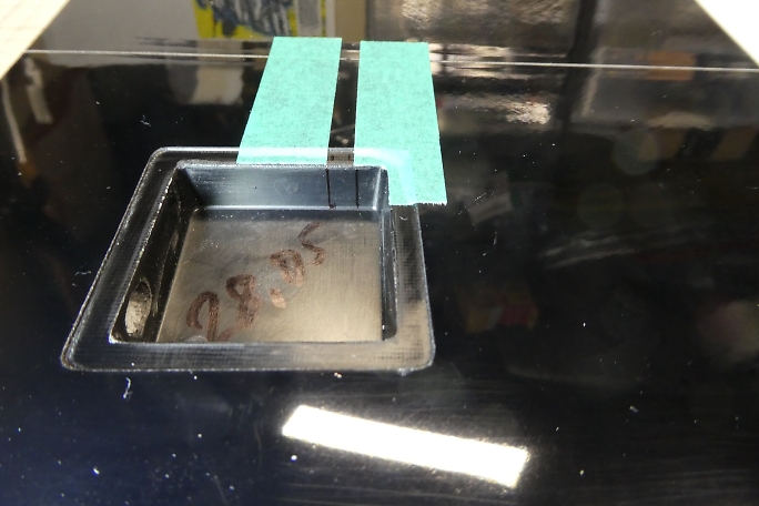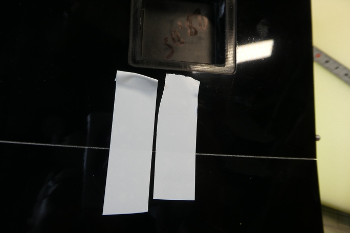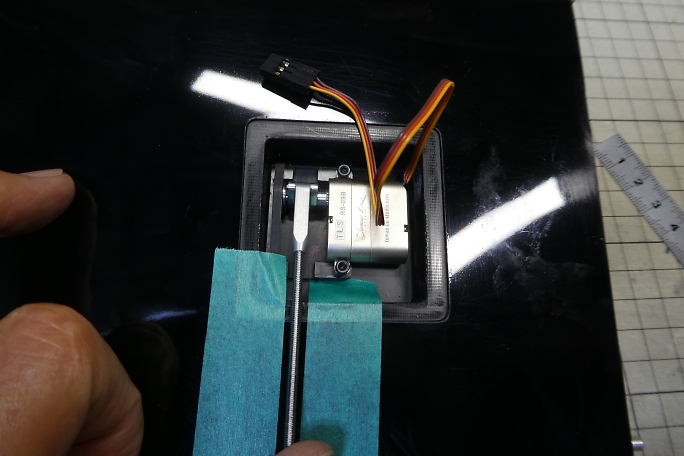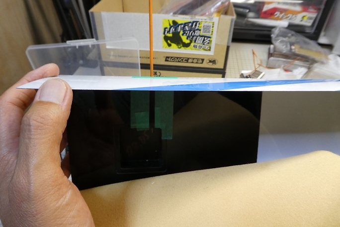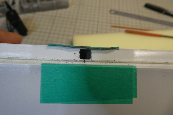 仮組みをした段階で、ロッドの通るラインをマーキングしておきます。 サーボの取り外しを考えて、翼端側(写真の左側) に寄せておきます。 ![]() ![]() マーキングしたロッドラインにビニールテープを貼って、LEDライトを当てるとも隙間が明るく見えますので、その位置を ヒンジ上にマーキングします。 ![]() ロッドの通る穴を開けるにあたって、ロッドホールのイメージをマスキングテープで表現しておきます。 幅は6ミリです。 この機体のエルロンは、主翼の中心線とヒンジラインに角度が付いています。 サーボホールは中心線基準で設けられて いますが、ヒンジラインは中心線と平行では無いので、サーボホールに対してサーボが少し角度が付いて固定される 形になります。 ![]() マスキングテープを延長して、サーボホールにロッドの穴開け位置をマーキングします。 ![]() ヒンジにしたマーキングから、ロッドの取り出し口をマーキングします。 こちらも6ミリ幅とします。 ![]() 後縁部分から細い棒ヤスリを差し込んで、下穴を開けます。 マスキングテープのロッドラインイメージを見ながら、 真っ直ぐに穴を開けます。 後縁材はかなりしっかりしていて、カーボンも肉厚です。 気合を入れて差し込みます。 ![]() 下穴からリューターや棒ヤスリで穴を広げて行きます。 ![]() 棒ヤスリの目が細かすぎて、なかなかロハセルが削れないので、棒ヤスリに120番のサンドペーパーを貼って削り ました。 |