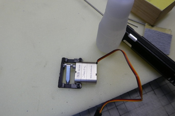 エルロンホーン、サーボを含めた仮組みをしてみます。 サーボの収まり、リンケージのクリアランスなど問題無く収まり ました。 ![]() 今まで仮組み状態だったサーボベッド、サーボベッド部分とベアリングフレームを中粘度瞬間接着剤で接着します。 |