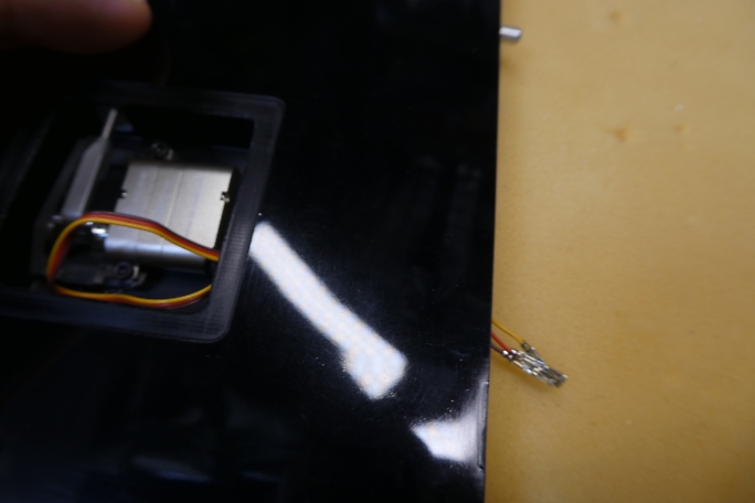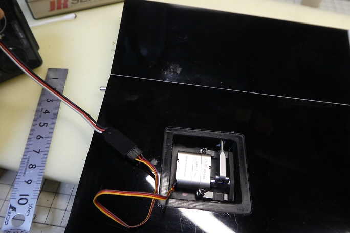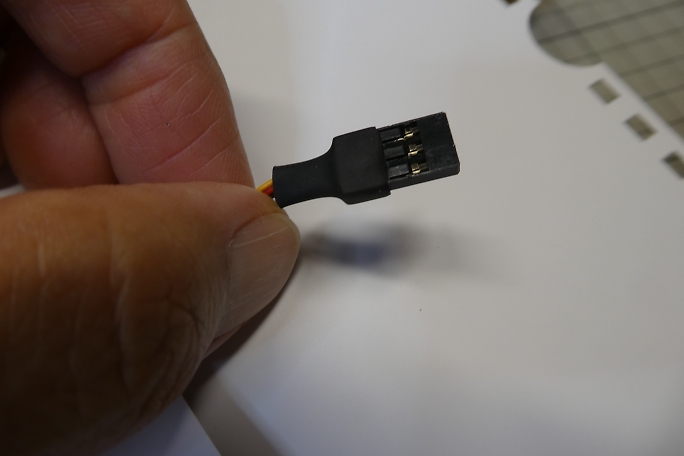 ![]() メーカーで開けてきたコードホール位置が悪く、コネクタのハウジングとサーボが干渉するので、ハウジングを外した状態 でコードを通します。 ![]() コネクタの持ち手にするために6ミリサイズのシュリンクチューブを15ミリ長でカットします。 ![]() そのままでは入りません。 8ミリサイズにすると、収縮させたときに厚手となってしまうので、ラジオペンチを使ってシュリンク チューブ延ばして使用します。 収縮させて持ち手の完成です。 物によって収縮時の熱でコネクタのハウジングが変形してしまうので、様子を見ながら 収縮させます。 |