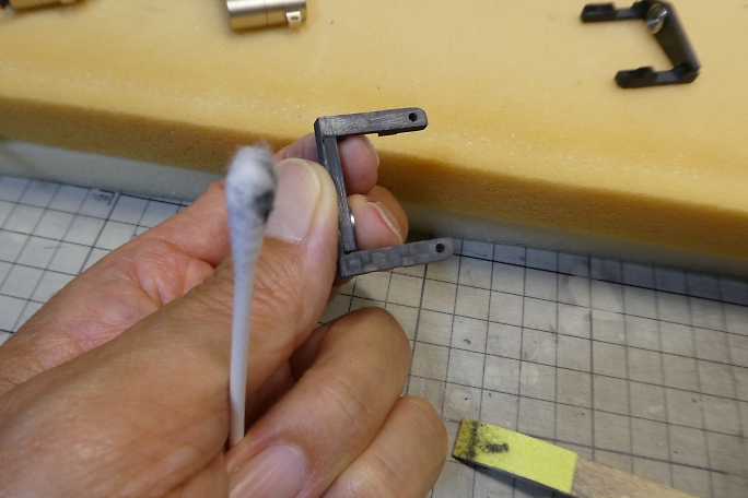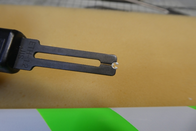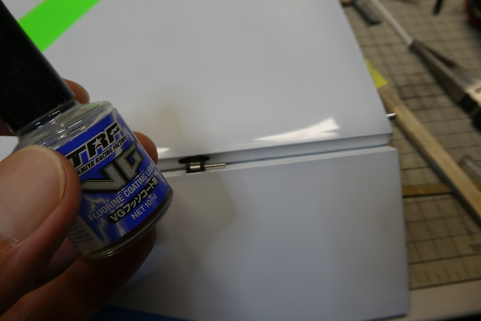 サーボホーンを取り付ける前に、サーボホーンとピンの摺動部にフッ素コート剤を塗布しておきます。 シリコンオイル も考えましたが、埃を呼びそうです。 ![]() 1520μsのニュートラルに合わせたサーボにサーボホーンを差し込みます。 一度外す必要があるので、シミュレーション となります。 ![]() サーボベッドの接着部をサンディングして足付けをしておきます。 ![]() 接着部を硬化促進剤で拭いておきます。 ![]() ![]() サーボホールの接着部をサンディングして、硬化促進剤で拭いておきます。 ![]() エルロンホーンのピン部分にもフッ素コート剤を塗布しておきます。 ![]() サーボとサーボベッドを組んだままでは組み付けが出来ませんでした。 手順があり、先ずはロッドとサーボホーンを 組み付けます。 ![]() 次にサーボベッドを入れ、ベアリングにサーボホーンを取り付けておきます。 ![]() ![]() 最後にサーボを入れてネジ止めをします。 ![]() サーボを1520μsのニュートラルに合わせ、エルロンの舵面のニュートラルも合わせた状態で、サーボベッドの対角 2点のみ、中粘度瞬間接着剤の点付けで仮固定します。 その状態で動作確認をして、リンケージの干渉などを確認します。 問題が無いようなら、残りのサーボベッド、 ベアリングフレームにも中粘度瞬間接着剤を流して本接着をします。 ![]() ![]() エルロンホーンのピンをEリングで抜け止めをします。 1.2サイズのEリングセッターを使用します。 |