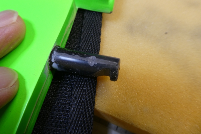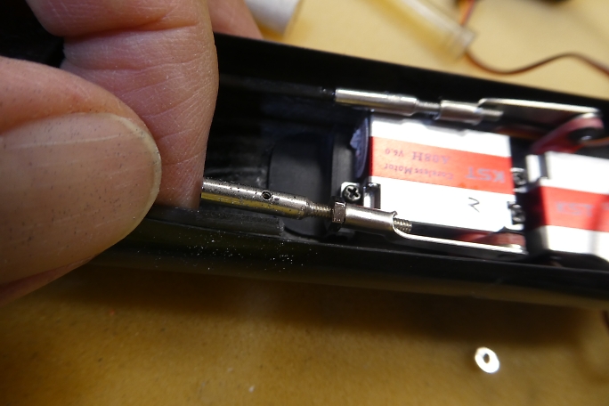 ![]() ラダーの動きが渋いと思ったら、リンケージロッドと垂直尾翼のカンザシが干渉していました。 ![]() リンケージが当たる部分のカンザシを削って道を作り、干渉の解消をしました。 IDS組の機体に付属したリンケージロッジは、先端のピアノ線が曲げられていて、干渉はありませんでした。 私の機体は付属するリンケージロッドを間違えたのか、ストレートの、エレベーターとラダー用は同じリンケージロッドが 付属していました。 |
