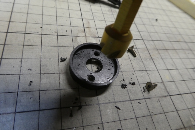 ![]() 今回から、市販の樹脂製モーターマウントが付属します。 いつもは胴体側を削らないとマウントが入らなかったのですが、 今回の物は無加工で良いサイズ感となっています。 ![]() ![]() PCで作ったモーター取り付け穴のテンプレートをスプレー糊でモーターマウントに貼り付け、穴位置にポンチを打ちます。 ![]() リュータースタンドを使って、モーターマウントの穴開けを行います。 1.5ミリドリルから始めて、少しずつ太くし、3ミリドリル で仕上げます。 ![]() 皿ネジを使用するので、モーターマウントに皿穴加工をします。 ![]() 使用するボルトを入れて見ました。 |