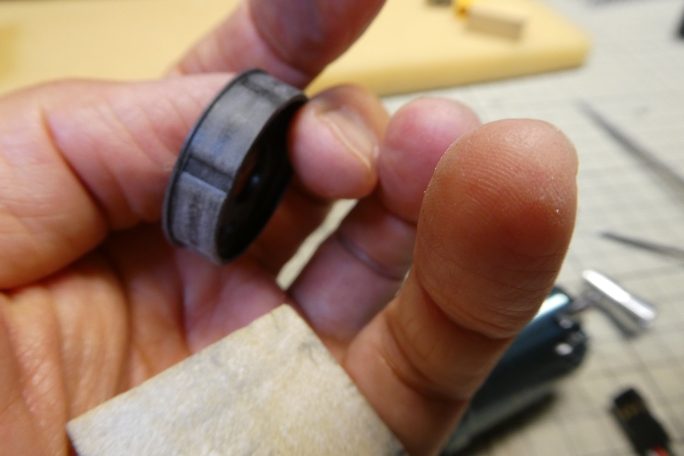 ![]() 胴体とモーターマウントの接着部をサンディングしておきます。 ![]() ![]() 胴体とモーターマウントの接着部を硬化促進剤で拭いておきます。 ![]() 実際にモーターを入れて見て、アンプ、コードの収まりの良い角度にモーターマウントをはめ込みます。 ![]() 胴体とモーターマウントの隙間、胴体内部からも低粘度瞬間接着剤を流してモーターマウントを接着します。 モーターマウントのフランジ部分は胴体外周とほぽ同サイズのために、削る必要もありませんでした。 |