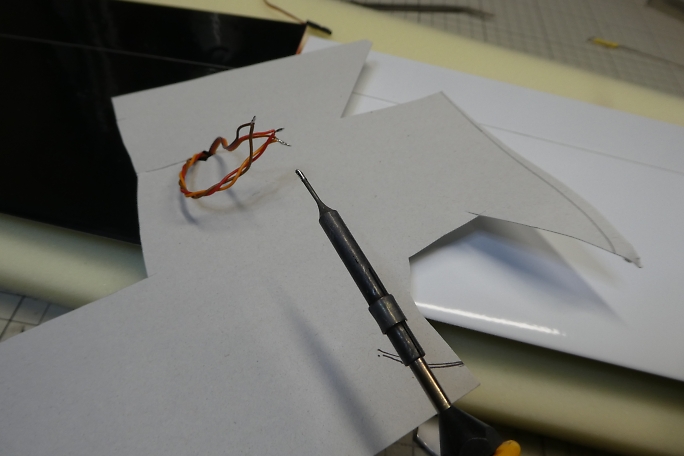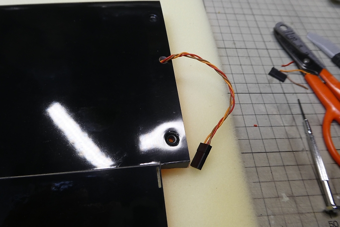 ![]() ピアノ線を使って、エルロンサーボ用の延長コードを通します。 ![]() サーボホールにはコネクタが収まるスペースが無いので、延長コードとサーボコードはダイレクトにハンダ付けで 接続します。 主翼上で作業をするので、ボール紙で養生をしておきます。 ![]() シュリンクチューブで絶縁しておきます。 ![]() コードを納めます。 ![]() 反対側はコネクタを取り付けます。 ![]() 通しで動作確認をしておきます。 |