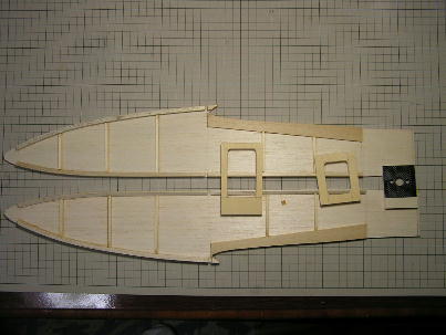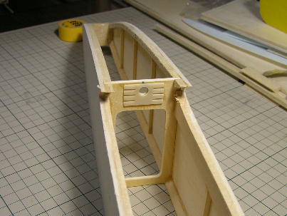 ![]() キットには、フイルムが貼られた完成品の胴体ポッドが付属しますが、とても使う 気が起きない一品でした。 内張がちゃんと接着されていなかったり、主翼と上手く合わなかったりと不満は 色々とありましたが、決定的なのはマウント部分の幅です。 この機体はプッシ ャー式ですが、どう見てもハブの幅よりも胴体幅の方が広いのです。 このまま ではペラが展開出来ません。 そのーのあたりをいちいち直しているくらいなら...作り直した方が早いです。 側板は3ミリバルサ、楯に3*3のヒノキを接着して、胴枠代わりとしています。 |