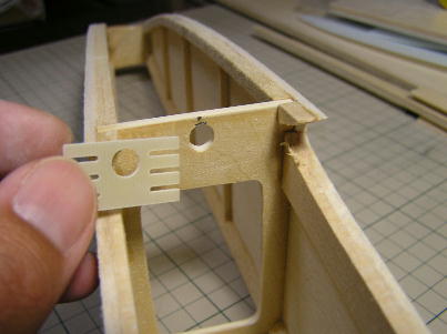 ![]() 捻れないように注意しながら胴枠と側板を瞬間接着剤で接着して組み上げます。 ![]() ダウエル受けの穴を開け、調整したところ、上の部分の肉がほとんど無くなって しまいました。 胴枠は3ミリベニヤ製ですが、ちょっと心配でしたのでFRP板を 加工して補強として接着しました。 ![]() このようになりました。 ![]() テール部分は、スピンナー、ハブに合わせて削る必要がありますので、四隅に 三角材を入れておきます。 |