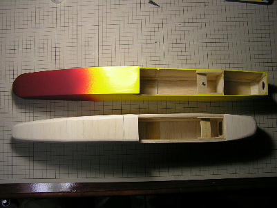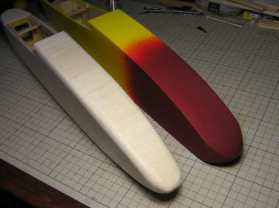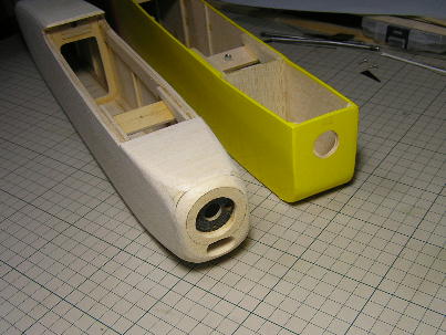 ![]() 生地完になった胴体ポッドです。 上はキット付属の物です。 変更点はノーズの絞り込み、バッテリーハッチの新設 (キット付属品は主翼を取り外してバッテリーを交換する) ショートテール化など です。 ![]() オリジナルは540モーターのギヤダウンが指定ですが、今回は480モーターの ダイレクトで行きますので、それに合わせてモーター室を短くしました。 少しですがテール周りの軽量化に貢献してます。 使用するハブに合わせてテール周りは削り込んであります。 オリジナルです と、ペラ展開時に迫り出してくる分、ハブと胴体の間に隙間を開けなければなり ません。 ![]() オリジナルは寸胴でただの箱です。 ただ、この幅は単二サイズに合わせて ありましたので、当時は単二サイズのパックを重り代わりにノーズに積んだのだと 思われます。 今回はLipoか2/3Aサイズのニッケル水素電池を使いますので、それに合わ せてノーズを絞りました。 |