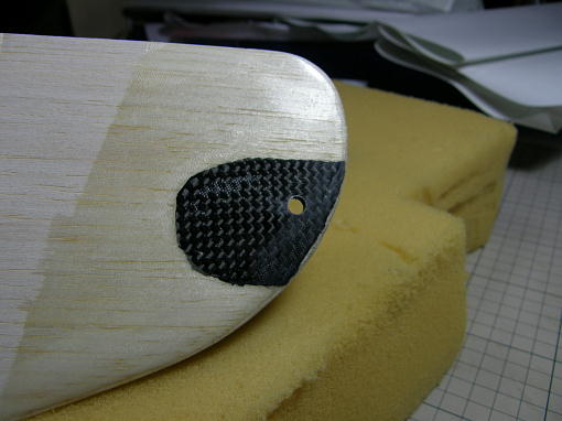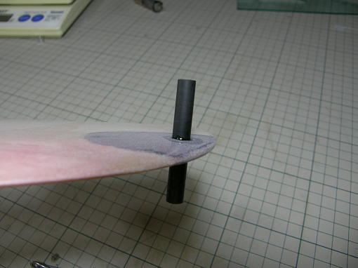 ![]() フイルムを貼る前にペグ穴を開けておきます。 マイクロバルーンエポキシを充填しようかと思っていましたが、この部分は空洞になって居 ませんでした。 |