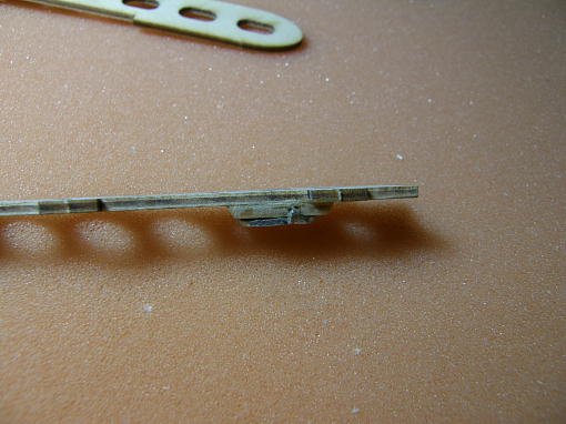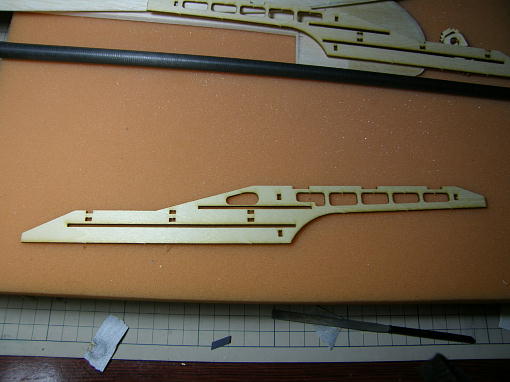 ![]() 胴体側面の溝には、2ミリのカーボンロッドを埋め込んで補強にします。 側面のベニヤは2ミリですが若干厚いので、組み上がった時に内側になる方にカーボンロッド を寄せて接着します。 そうすれば、胴枠とカーボンロッドが接着されますので少しは強度がア ップすると思います。 |