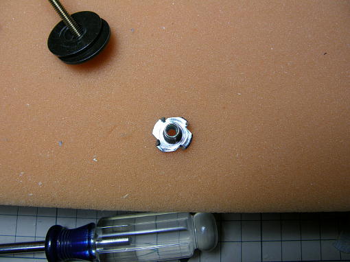![]() ウイングボルトの受けになるM4の爪付きナットです。 ![]() 組み上がった時にパイプとの隙間が少ないのでナットの爪はしっかり台座に食い込ませます。 叩き込んでも良いのですが、ネジで引き上げる工法を取りました。 付属のボルトはアルミ製 ですので、この作業には使わない方が良いと思います。 ![]() 爪をしっかり食い込ませた台座です。 ナットの頭が飛び出していますね。 ![]() ![]() 飛び出した頭は、ヤスリで綺麗に削り落とします。 サンディングボードで簡単に削れました。 |