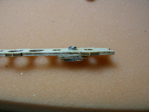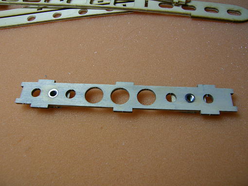 ![]() 胴体側板です。 左が機首になり、この部分にサーボが収まります。 箱構造なので丈夫なのですが、サーボの取り付け時に楽なように穴開け加工をします。 ![]() サーボが見えるように穴を開けます。 また、エルロンサーボのホーンが干渉する部分もこの 時点で削っておきました。 この程度では軽量化にはなりませんので悪しからず。 |