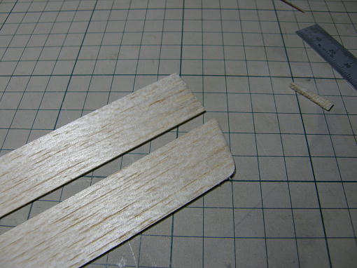 ![]() 翼端をスパーの切り欠きをガイドに削ります。 ![]() 翼端材を接着します。 |