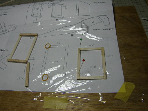 ![]() 機首補強材はサイドスラストの分、左右で長さが違います。 良く確認して使いましょう。 ![]() 原寸図を元にムサシノ式の胴枠を組み立てます。 ![]() 組み立てた胴枠は四面をサンディングして平面を整えます。 ![]() 主翼前の胴枠はゴム掛けが入るスペースを開けないといけないので、実際のゴム掛け材を使って隙間 を作ります。 ![]() メインギヤ受けです。 ![]() モーターマウントはモーターベースを取り付ける位置がサイドスラストの関係で中心ではありません。 また、モーターベースはロットによって取り付けネジの位置が違う場合があるようです。 私の所に来た物は、モーターベース取り付けネジと同じ位相にありました。 以上の理由でモーターマウントは上下左右の区別がありますので取り付け時に間違わないように向き を書き込んでおきました。 |