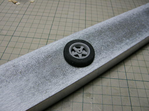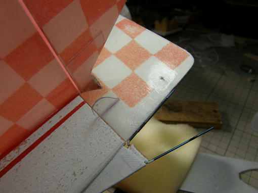 ![]() スパッツを作ります。 スチレンペーパーにバルサの補強を接着して組み合わせますが、バルサの補強はキットの指示通り、スチ レンペーパー使用する場合は図面通りで良いのですが、市販の汎用タイヤを使用する場合はタイヤの大 きさに合わせてください。 木村はタイヤを削るはめになりました。 ![]() 左右の位置決めは穴にピアノ線を通してあげると楽に出来ます。 接着は全て発泡用瞬間接着剤です。 ![]() 接着剤が硬化後に回りをサンディングして形を整えます。 ![]() メインギヤを取り付けるサポートを実際に胴体に取り付けて角度を決めて接着します。 幅はメインギヤが きゅっと入る様に調整します。 注:この写真の取り付け場所は間違っています。 この位置では後端が地面を擦ってしまいます。 ![]() 30ミリ径の市販の汎用タイヤを使いましたが、幅、大きさ共にオーバーしていて、現物合わせで削って スパッツに合わせました。 ![]() メインギヤはスパッツ取り付けの為にこの様に加工します。 スパッツを付けないのならば、この加工は 必要無いでしょう。 ![]() メインギヤとスパッツはセメダインスーパーX2で接着、その後に押さえ板を瞬間接着剤で接着します。 メインギヤを胴体のポケットに押し込み、ギヤ固定用の三角材を押し込んで三角材と胴体を瞬間接着剤で 点付けして固定します。 メインギヤ自体は接着しません。 |