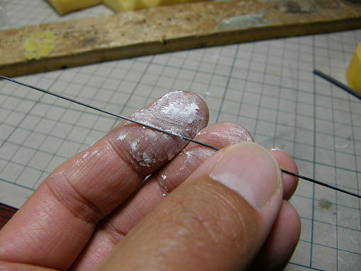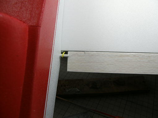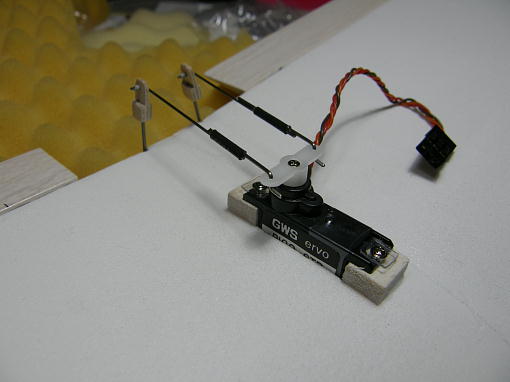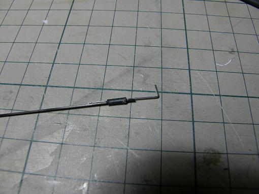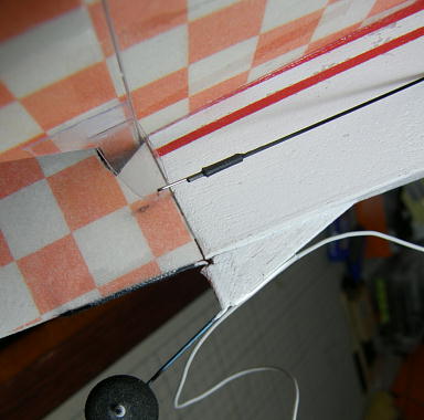 ![]() エルロンサーボはGWSのPIKO−STDです。 このサーボはゴムブッシュとハトメを使ってサーボを固定 する仕様ですが、前後左右の動きはサーボベッドにより規制されますので、固定は抜け止めだけで充分 です。 塩ビ板を5*5ミリサイズに切って押さえ板として、サーボ付属のタッピングネジで固定します。 コントロールロッドは0.8ミリピアノ線で、サーボ側はZクランク、エルロンホーン側はL字に曲げた物を ヒシチューブで束ねて収縮させ、ニュートラルを合わせた後に瞬間接着剤で固定します。 エルロンホーン側のL字の抜け止めにはビニールコードの被覆をはめ込んで瞬間接着剤で止めてあり ます。 ![]() ラダー、エレベーターリンケージの先端です。 0.8ミリカーボンロッドと0.5ミリピアノ線をL字に曲げた 物をヒシチューブで束ね、瞬間接着剤で固定した物です。 ![]() カーボンロッドをポリミイドチューブに挿入する際は「すべすべ君」を塗りつけます。 ![]() サーボ側は0.8ミリピアノ線でZクランクを作り、カーボンロッドとヒシチューブと束ね、ニュートラルを合わ せて瞬間接着剤で固定します。 ヒシチューブをこの状態で収縮させることは出来ませんので、予めピアノ線とカーボンロッドにヒシチューブ を被せて収縮させた後にロッドを抜き、サイズを固定したチューブを用意しておきます。 ![]() エレベーターもラダーもロッドはホーンに差し込んであるだけで抜け止めは施してありません。 |