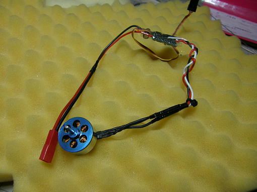 ![]() モーターきキット付属のKV値1700の物で、アンプはホビーネットのTP12Aです。 GWSの6030で フルスロットル3A弱ですので充分でしょう。 モーター取り付けのM2.6のイモネジがテスト中に緩んで脱落、モーターに貼り付いて酷いことになって しまいました。 私はネジ穴をM3のタップを立てて広げて、M3のイモネジで固定するようにしましたが、イモネジには ネジロック剤を塗ってから締め付けました。 |