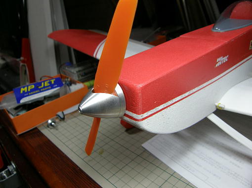 ![]() ![]() ![]() キットにはプロペラセーバータイプのアダプターが付属しますが、ちょっとオシャレにMPJの30ミリのアル ミ製スピンナーを奢ってみました。 このスピンナーはコレットチャックでモーターのシャフトを咥えますが、噛み代が少なかったので、プレート 部分のスカートを削って噛み代を稼ぎました。 マイクロレースとかがあればあっという間なのでしょうけど、ここはリューターに咥えさ、回しながら少しず つ削りました。 ![]() スピンナーを取り付けてから気がつきました。 冷却口がありません。 両脇に空気取り入れ口をリューターで削って付けてあげました。 |