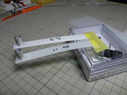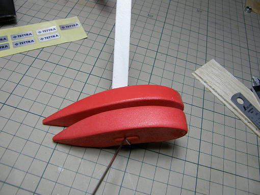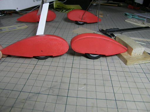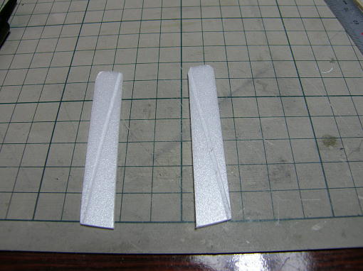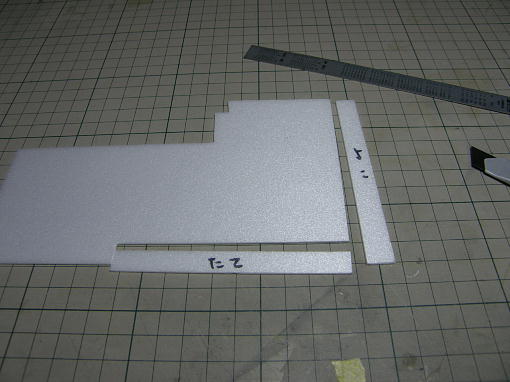 ![]() 私の飛ばしているグランドではキット付属のスパッツではクリアランスが足りず、タイヤがもぐってしま い、砂や草を掻き分けるような状態になってしまうので、タイヤの取り付け位置を下げたスパッツを キット付属の補修用スチレンペーパーを使って作りました。 タイヤの露出度が多くなった分、スパッツを小型化しました。 アウトラインは一緒です。 ![]() ![]() スチレンペーパーにはバルサのように縦目と横目がありますので、曲げの強いところ、強度が欲しい ところとで使い分けをします。 ![]() タイヤが入れにくかったので幅を少し広げました。 ![]() メインギヤカバーは裏面に溝を掘ってメインギヤにセメダインスーパーX2で接着します。 ![]() 接着剤が硬化するまで、角度を合わせてセロテープで固定しておきます。 |