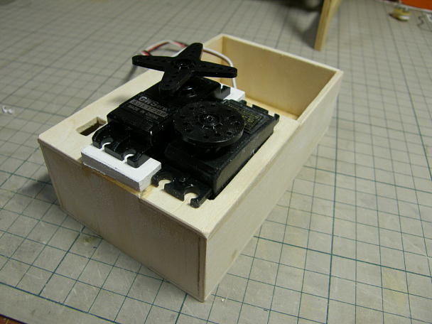 ![]() メカボックスはダイカットされたベニヤ板から組み立てます。 参考にした海外サイトでは肉抜きをしていたりもしますが、 普通に瞬間接着剤で組んだだけです。 組み立て後にクリアラッカーを丁寧に塗って防水処理をしました。 水物は大なり小なり浸水する物ですから。 ![]() サーボを仮組してみます。 右がラダーサーボ、左がセールサーボになります。 ラダーサーボはプロポのセットに付いて来たスタンダードサーボ、 セールサーボはGWSのセールサーボです。 背格好がほぼ同じなので、ホーンの干渉をクリアするためにセールサーボは5ミリ下駄を履かせて搭載します。 ![]() キット指示のメカボックス搭載位置 ![]() きむらクラフトのメカボックスの搭載位置 ![]() メカボックスはキット指示の取り付け位置よりも前に、センターキールの受けに添わす様に取り付けられますので、キール 受けの出っ張りをまたぐ為の加工をしています。 ![]() また、反対側はハルのアールに沿うように、画像の左側のメカボックスの角を丸めます。 |