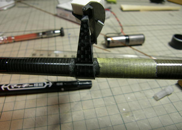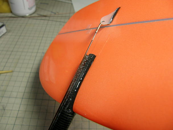 ![]() 3号機でもやりましたが、ラダーリンケージ用のロッドが走るのに障害になるフライングテールマウントに溝を付けます。 ![]() アウターチューブを埋め込むことでリンケージを真っ直ぐに通すことが出来ます。 強度に関しては3号機で実証済みです。 たぶん、大丈夫です。 ![]() 同じように障害になる後ろ側の主翼マウントも溝を掘ります。 掘って判ったのですが、このパーツはエンジニアリング プラスチックです。 ![]() カーボンロッドにL字ロッドを瞬間接着剤で接着、アウターのポリミイドチューブをブームに接着していきます。 ![]() ブームはあらかじめ瞬間接着剤の硬化促進剤で拭き上げておくと、瞬間接着剤の乗りが良くなります。 ブームから浮いた部分にはカーボンを貼った1ミリバルサでスロープを作って埋めます。 ![]() フライングテールマウントにも接着。 ![]() 主翼マウントにも接着。 ブームには約100ミリ間隔で瞬間接着剤を点付けしていきます。 ノズルから一滴垂らすだけで、前後30ミリ程が接着 されます。 ギター弦など細いピアノ線は柔軟性があるので接着の隙間が空くとリンケージがたわむ恐れがありますが、カーボン ロッドをリンケージに使う場合はこれで充分です。 ニュートラルを合わせてロッドエンドをニッパーでカシめて瞬間接着剤で接着、固定します。 たわみ具合を見て、この位置に「馬」を当てました。 |