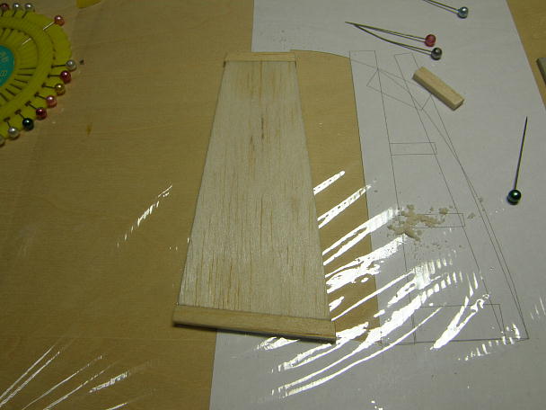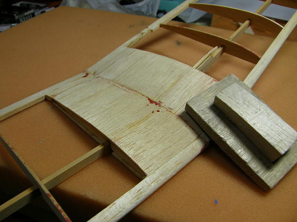 ![]() パソコンで作った図面にラップを被せて、切り出した3ミリバルサで水平尾翼を組み立てます。 ![]() ラダーは反り防止の補強を接着します。 ![]() 垂直尾翼も3ミリバルサで組み立てます。 ![]() 水平尾翼はフライングテールになりますので、全体を翼型の「イメージ」でサンディング、整形します。 後縁は本来ならぎりぎりまで薄く削りたいところですが、運用を考えて1ミリ程度までのサンディングと しました。 ![]() 垂直尾翼、ラダーも同様にサンディングします。 ![]() 尾翼が生地完成となりました。 ![]() 主翼は古いフイルムの剥がしカスの除去を含めて、段差などを徹底的にシェイプしました。 ![]() なぜか右と左で違っていた翼端を揃えます。 右翼端を型取りして、左側を右と同型に仕上げます。 ![]() 右翼か捻れていたので、霧吹きで湿らせて反対側にねじって放置、修正しました。 |