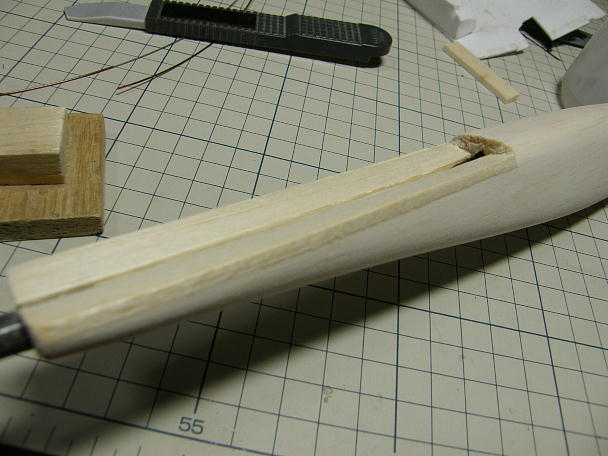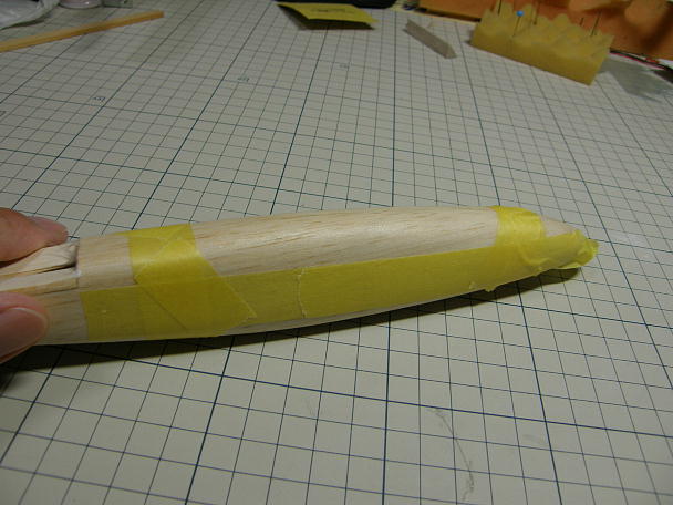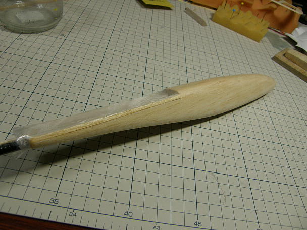 ![]() ポッドは切りっぱなし状態でしたので、主翼の上反角に合わせた「馬」が必要でした。 5ミリバルサを接着、上反角 に合わせて整形しました。 ![]() グラス仕上げが指定でしたので、マイクログラスをエポキシ樹脂で貼り込みます。 マイクログラスの上に樹脂を 置いて、カードで樹脂を延ばしていきます。 貼り終わったら、キッチンペーパーを当てて、余分な樹脂を取り除いて硬化させます。 私の経験からですが、コレでバギングして密着させるのもありなのですが、そうするとグラス目んが潰れて厚みが 少なくなります。 表面は綺麗ですが、強度は今ひとつな気がします。 今回は強度優先なので、バギングはせず、自然硬化としました。 ![]() 硬化が完了したポッドです。 ![]() キャノピーを切り出します。 切り出すラインをマスキングテープでマークします。 左右均等になるように気をつけはしましたが、フリーハンド です。 ![]() カッターでザックリ切り出しました。 ちょっと欠けちゃった部分も出ましたが、表面がグラスでしっかりとしていますので、バルサをあてがって修復しま した。 ![]() サーボと受信機が収まるように内部を削り広げました。 ![]() ダウエルは1.5ミリのカーボンパイプです。 左右位置を合わせて、先ずはマチ針で穴を開け、前後左右位置を確認した後に穴をカーボンパイプのサイズに 広げていきます。 ![]() 塗装に備えてホワイトサフェーサーを吹いて下地作りをしました。 |
