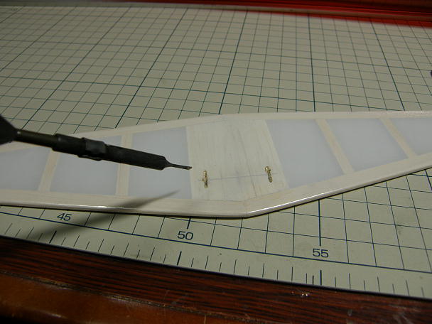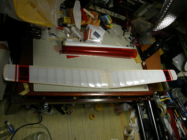 ![]() ポッドはイタリアンレッドの缶スプレーでさっと一吹き。 グラス目を隠す程の塗装はしていません。 ![]() フックはヒートンを延ばして作りました。 ![]() 仮想重心位置より前10ミリの所にフックをねじ込み、瞬間接着剤を染みこませておきます。 主翼の強度が殆ど無いので、安全策です。 ![]() フライングテールの台座を埋め込む溝を加工します。 ![]() 仮組してみました。 シャフトは0.8ミリのカーボンロッドです。 ![]() オラライトで被覆します。 ポッドの色と合わせて、ラダーは赤くしてみました。 ![]() フライングテールの取り付け部分のフイルムをハンダゴテで溶かして取り除きます。 ![]() ちょっと焦げちゃいました。 ![]() 台座を組み込み、シャフトのみ瞬間接着剤で水平尾翼と接着します。 ![]() ラダーホーン(左)とエレベーターホーン(右)です。 エレベーターホーンにはフライングテール のシャフトの逃げが加工してあります。 素材は例によって0.5ミリFRP板です。 ![]() ホーンを瞬間接着剤で接着しました。 ![]() ラダーのヒンジはムサシノライトヒンジです。 薄くてしなやかです。 瞬間接着剤のみで接着しています。 ![]() 主翼もオラライトで被覆しました。 ![]() 重心位置合わせに粒鉛にエポキシ接着剤を絡めて、ノーズ内部に流し込みました。 |