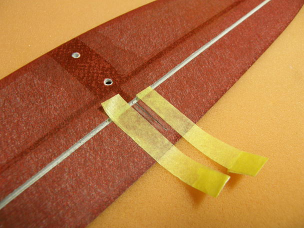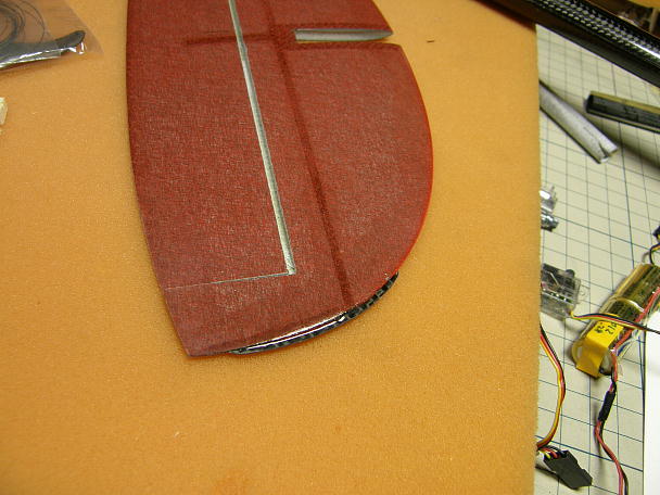 ![]() 垂直尾翼に補強を兼ねたスキッドを接着します。 パーテーションラインに沿ってピラニアソーで切れ込みを入れます。 ![]() カーボンシートの両面をサンドペーパーで良く荒らしておきます。 ![]() 5分エポキシで接着しします。 初フライトで補強を入れたにも関わらず座屈してしまいました。 カーボンスプレッドの切れ端を当てて補強しました。 最初からやって置いて損は無さそうです。 |