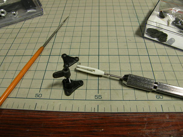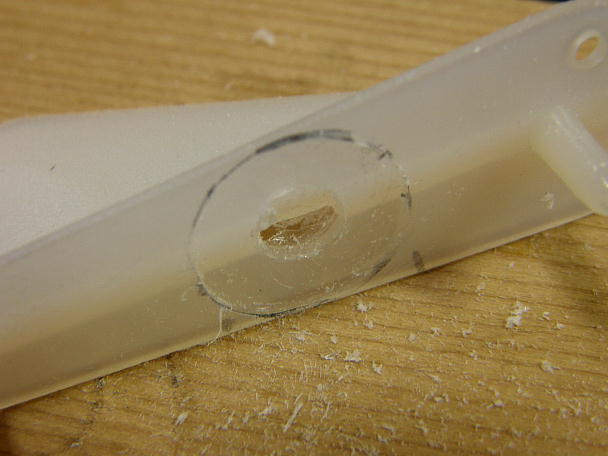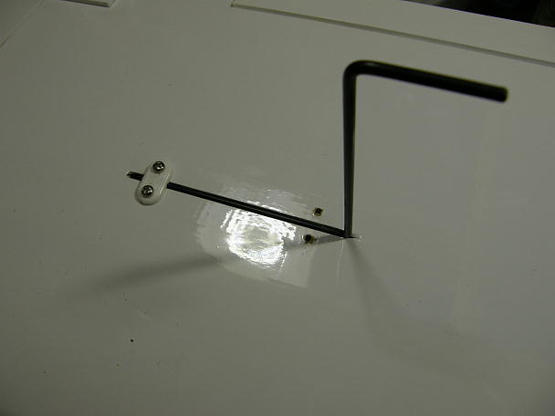 ![]() ラダー、エレベーターホーンはキット付属の物を使います。 M2の取り付けネジに合わせてロッドキーバー、 ホーンの取り付けネジ部を2ミリドリルでさらっておきます。 固すぎるとM2のネジ頭などは簡単になめてしまいますし、手が滑ってドライバーがあらぬ所に「ぶすっ」なんて 事もあり得ます。 ![]() 中心を決めて下穴を開けます。 こちらはキリを使ってぷすっと開けています。 ![]() ありがちなことですが、取り付けネジは規格品ですから長めに出来ています。 そのままですと見栄えも悪いし 何かに引っかかることも考えられます。 グライダー屋さんですから、空力にも気をつかいたいです。 ![]() 長さを測って、ニッパーでカット、リューターで先端を丸め整形してあげます。 ![]() サーボのニュートラルを出してリンケージを行います。 いつもはフタバの送信機を使いますから、ニュートラルのパルスは1.52ですが、今回はHiTECの送信機を 使いますので1.50でニュートラルを設定します。 ![]() リンケージが終了です。 上がエレベーターサーボ、下がラダー、ステアリングサーボです。 |
