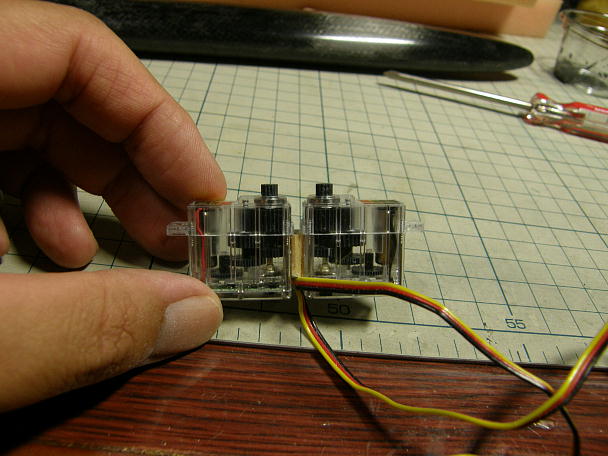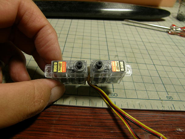 ![]() ラダー、エレベーターサーボの準備をします。 V3ではサーボにHS−5035HDを使用しのでサーボをコンパクト にまとめられましたが、今回は大柄なHS−5045HDなのでコンパクトにまとめるのは至難の業です。 対策として、ラダーとエレベーターのサーボ同士を接着して1つのブロックとする事にしました。 ![]() ぴったりと接着したかったのですが、サーボの構造上サーボコードの逃げを作る必要が出てきます。 サーボの接着はコードの逃げとして3ミリのベニヤを介して行います。 接着にはセメダインスーパーXを使用しました。 ![]() サーボベッドは1ミリFRP板から切り出しました。 サーボの取り付けはサーボブロックの前後一つずつと なります。 ![]() ほとんど意味はありませんが、のっぺりしていてつまらなかったので飾り穴をあけました。 また、バラスト取り 付け用の3ミリの穴を開けています。(左端) バラスト固定用のナイロンリベットが入ります。 ![]() サーボを取り付けるのに重宝していたHiTECのサーボホーンネジ。 以前は2個ずつ入っていたのですが、最近 は一個ずつになってしまって余剰が出ません。 同じ物は探せなかったのですが、近いサイズのタッピングネジがあったので購入しました。 金額は大した事は 無いのですが、購入単位は1000本です。 一生分ありそうです。 |