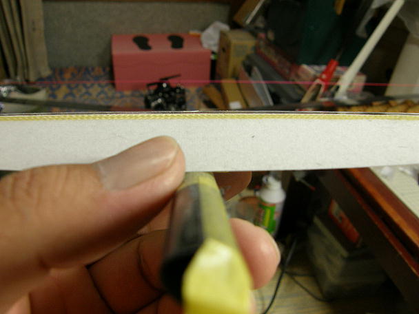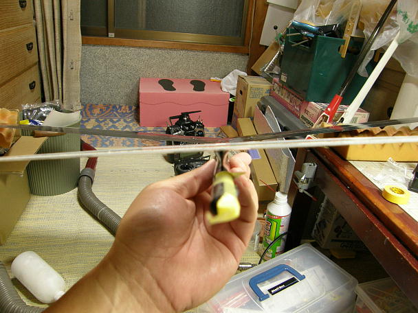 ![]() V3の時もそうでしたが、胴体の作りはお世辞にも良いとは言えません。 主翼と水平尾翼のアライメントは 思いっきりずれています。 ![]() 幸いな事に、水平尾翼マウントは肉厚でしっかりとした作りですので、水平尾翼マウントを削ってアライメントを 合わせます。 ![]() 少しずつ削って水平尾翼と主翼のアライメントを合わせます。 ![]() 主翼両端に張った水糸と水平尾翼の上面のラインが一致するようになりました。 ![]() 主翼後端と胴体の接地部分に隙間が開きます。 これもV3と同様です。 実はこの胴体はV2からの使い 回しで、V3,V3.5の主翼とは合わない物なのです。 V3同様にこの部分をエポキシ+カーボンパウダーで肉盛りして隙間を埋めます。 ![]() マスキングをしてカーボンパウダー入りエポキシを盛っていきます。 ![]() 硬化後に整形して主翼後端と合わせます。 |