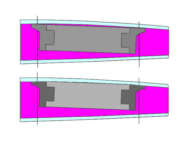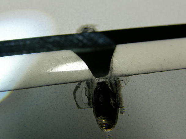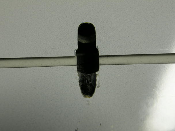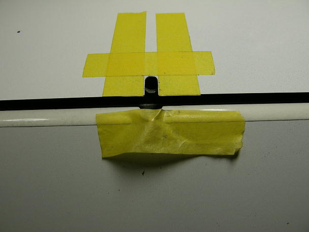 ![]() 加工前のフラップホーンまわりです。 奥に後縁材が見えていますが、後縁材がロハセルのブロックにカーボン ホースを被せて硬化させた物に変わっていました。 ![]() 動翼側のホーンまわりを加工します。 ホーンの首の所まで切り欠いて、ロッドエンドが自由に動くスペースを 確保します。 ![]() マスキングテープで養生をしてロッドエンドが入るギリギリのサイズで加工をします。 幅5.5ミリ、長さ10.5 ミリです。 ![]() 養生テープを剥がしたところです。 ロッドエンドのピンの逃げを加工して作業完了です。 ![]() 右がキット付属のブラスホーン。 全高が高すぎるので、いつも使う左側のMP−JETのブラスホーンに変えます。 |