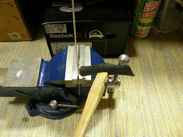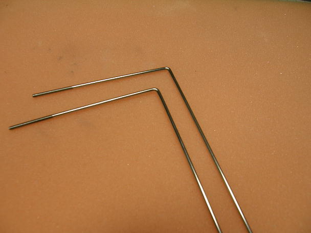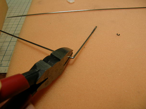 ![]() エルロンのサーボ用サーボロックです。 サーボを乗せた状態で位置決めをして、サーボロックの隅に瞬間接着剤 を一滴垂らして仮止めとします。 一度、サーボを取り外し、サーボロックの周囲に中粘度の瞬間接着剤を流して本接着とします。 ![]() ロッドはSUS製の物です。 曲げ位置をマーキングしたら、その部分を万力で咥え、ハンマーで叩いて曲げて いきます。 ![]() きっちりと曲がったロッドです。 ![]() ニッパーで咥えた状態でロッドをグルグル回し、Elリングの入る溝を切っていきます。 使用するEリングは E1.5と言うサイズです。 ![]() ロッド取り出しホールの大きさを抑えるために、ロッドをこの程度曲げています。 Eリング止めとしているので ロッド自体が回る事が無いため、曲げ加工をしても問題がありません。 ![]() ロッドを接続し、Elリングで抜け止めを施した状態です。 ![]() 表側はこの状態です。 フラップと違って、上方向に大きく動くようにしていますので、ニュートラルではロッドエンド とホールに余裕があります。 |