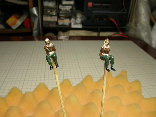 ![]() パイロットのバリを綺麗に落としました。 イスと操縦桿と合わせてみたら、股間を削らないと操縦桿が付かない 事がわかり、断腸の思いで股間を深く削り込みました。 ![]() パイロットを塗装しました。 刷毛塗りですが小さいので手先の慣らしを兼ねて慎重に塗りました。 |