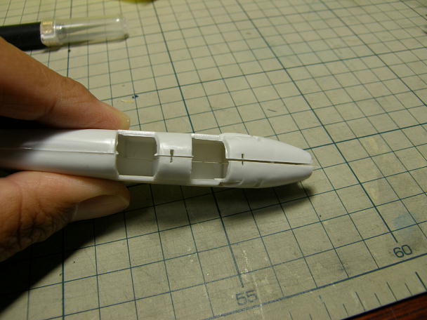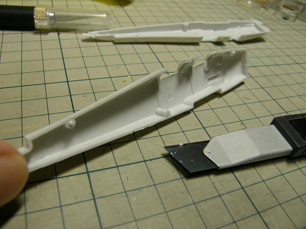 ![]() 胴体を仮組みしましたが、仮組みにもなりません。 色々な所が微妙にずれています。 ![]() 下面も主翼をはめ込む所がずれています。 ![]() 左右を位置決めするボッチもずれていて役に立たないので削り落としてしまいます。 ![]() サンディングボードで胴体の接合面の面出しを行います。 ノーズの所を基準として、コクピットの開口部分などを削ってつじつまを合わせました。 |